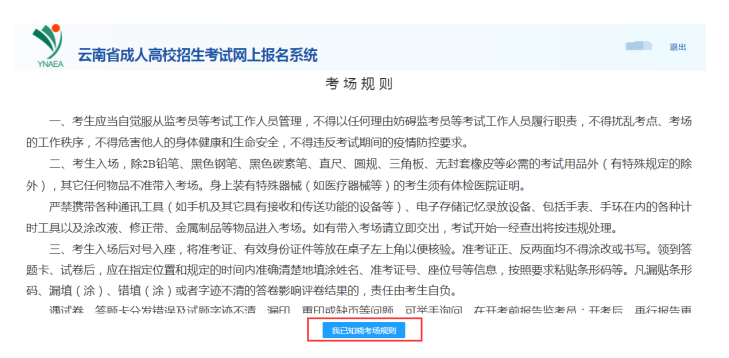 7.接下來考生要仔細(xì)閱讀《考場(chǎng)規(guī)則》,點(diǎn)擊“我已知曉考場(chǎng)規(guī)則”按鈕。