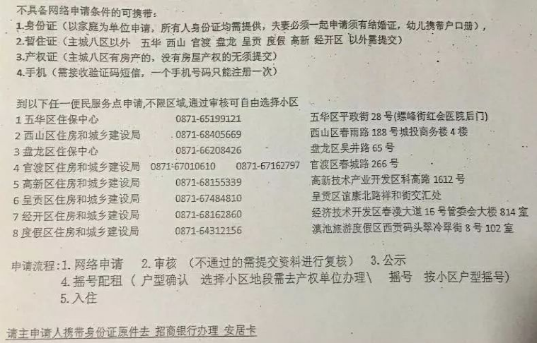 3、沒有享受過其他保障性住房。(在其他州市享受過公租房或其他保障性住房的,不能在昆明申請。)