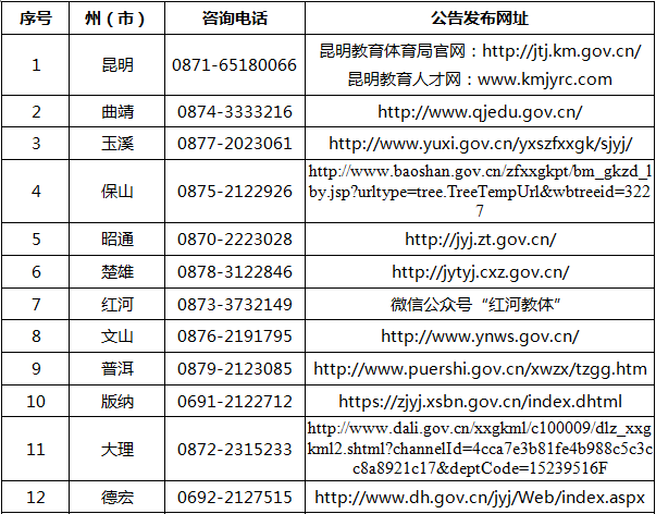 云南各州市中小學(xué)教師資格認定公告的查詢網(wǎng)址及聯(lián)系方式