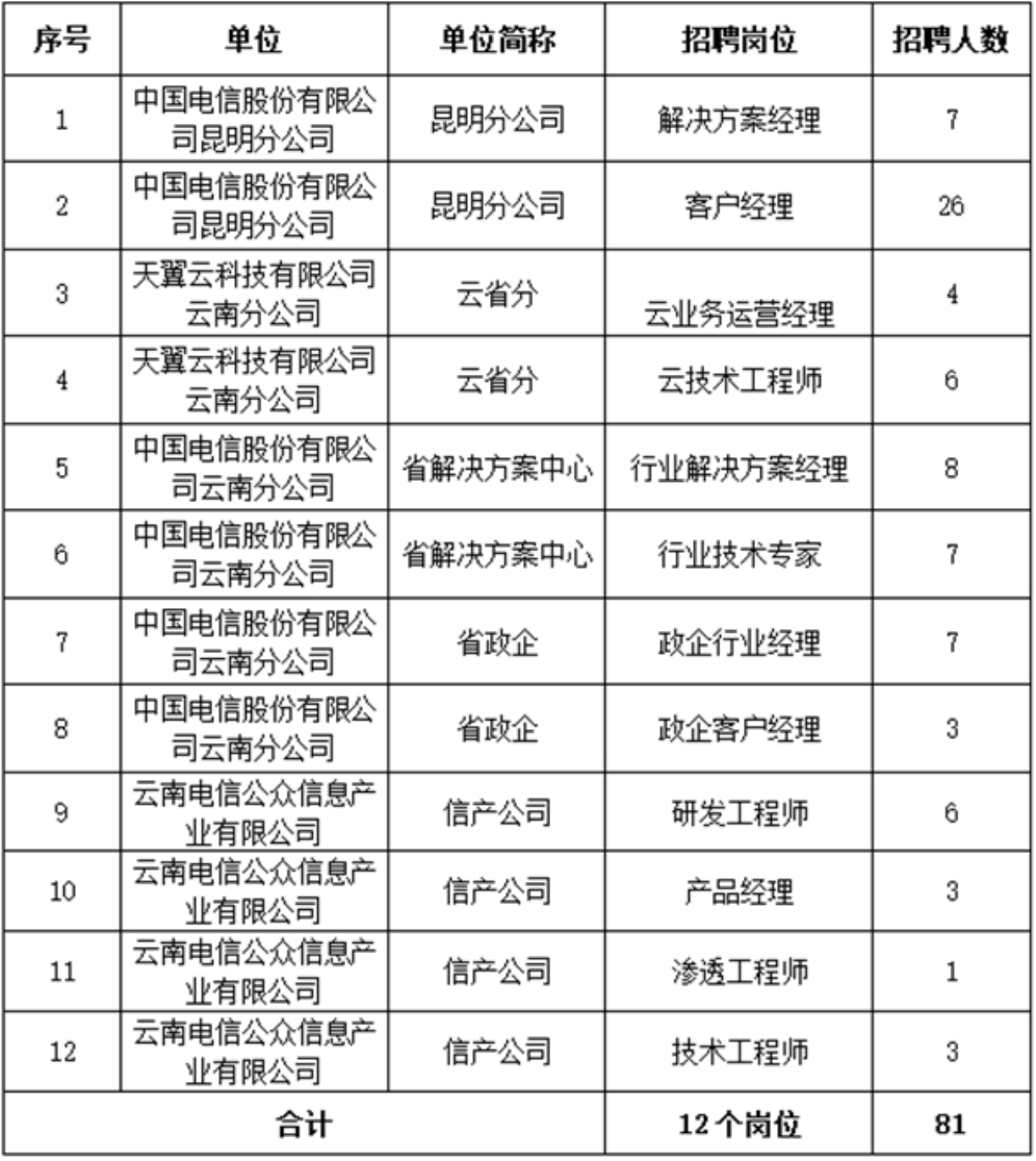 中國電信股份有限公司云南分公司2022年度行業(yè)專家及技術專家社會招聘公告