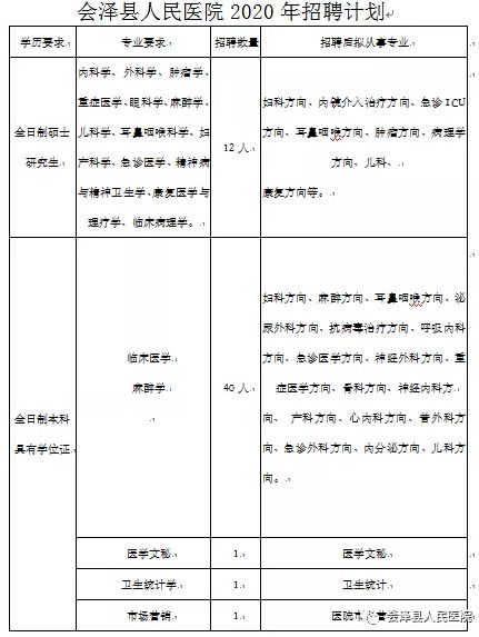 (二)會澤縣人民醫(yī)院2020年編外人員招聘計劃及相關(guān)要求